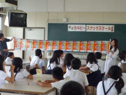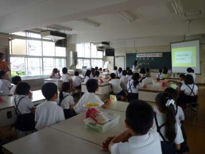 6月2日(火)5年生は出前授業を受けました。カルビーから講師を迎え、おやつについて大切なことを教えていただきました。まず、実際にポテトチップスの量を測って、おやつの量として35gがちょうどいいことを学びました。また、パッケージには大切な情報が書かれてあることも知りました。クイズ形式で、原材料は量の多い順に書かれてあることやおやつはごはんの2時間前に食べ終えることなど、楽しみながら役に立つことを学びました。