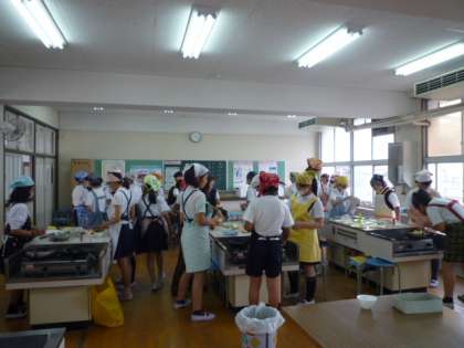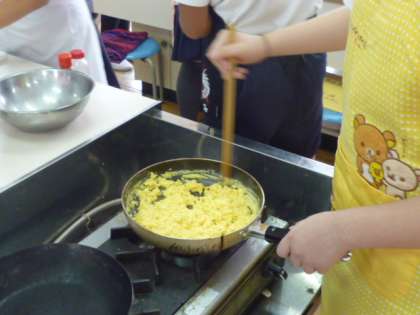 6月9日(火)、6年生は家庭科で学級ごとに調理実習をしました。メニューは野菜炒めとスクランブルエッグです。各班とも役割分担をして調理しました。スムーズにできたこともあり、とまどいながらもちょっとしたコツを教えてもらいながら、できたこともありました。実生活でとても役に立つことを学べました。自分たちで苦労して作った料理は格別なものになったと思います。
