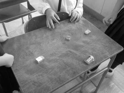 休み時間、子どもたちは、いろいろな遊び方をしています。外で、ドッジボール・おにごっこ・かくれんぼをする子。教室で、読書やクロムブックを使って学習をしている子。ふっと、そんな子どもたちの遊びを見ている中で、30年前から変わらない「消しゴム落とし」2022年でも子どもたちの遊びとして残っていました。