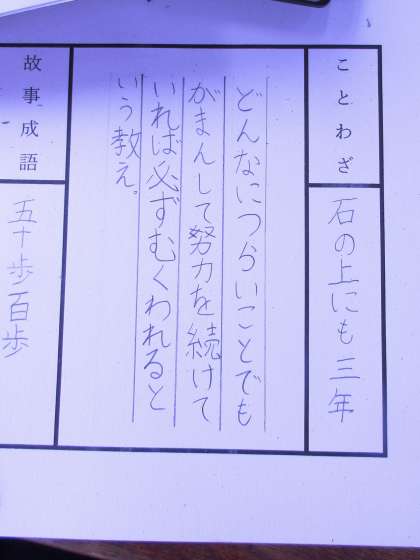 4年生の国語の授業では、「ことわざと故事成語」について学習しています。子どもたちは、自分の好きなことわざや故事成語を見つけることができました。
