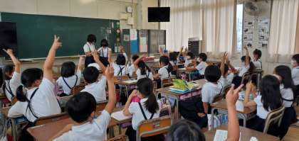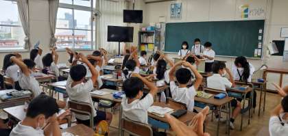 6月21日(火)〜27日(月)は「ぱくぱく週間」でした。給食時間を守り、残さず食べること、をめあてに取り組みました。22日(水)の朝の学習時間には、食事に興味をもってほしいという点から、衛生委員会の児童が各学級に「食に関するクイズ」を行いました。また、西淀川区の栄養教諭が来校し、全学年に栄養指導を行っているところです。
