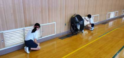 家庭科でよごれの種類やよごれ方、掃除の方法や手順について学習しました。実習として、学校の中の掃除場所を班で選び、その場所に合ったよごれの取り方を考え、掃除をしました。今度は家庭でも学習したことを生かし、工夫して掃除をしてほしいと思います。