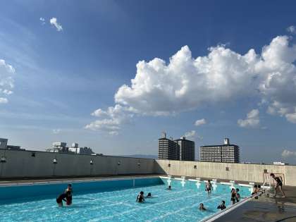 先日、健康委員会の子どもたちが、放課後にプール掃除を手伝ってくれました。とてもがんばってくれたおかげで、ピカピカになりました。