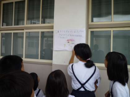 7月4日に土曜授業を行いました。1年生から6年生が1つのたてわり班のメンバーとなって、学校の中にあるクイズポイントを探し、協力しながら問題を解いたり、ゲームに挑戦しました。代表委員会の人たちがクイズやゲームを考え、当日もみんなが楽しめるように進めてくれました。
