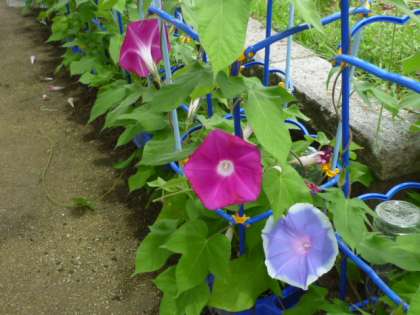 学習園では、1年生が「あさがお」、2年生は「ミニトマト」を鉢植えで育てています。毎朝、雨の日以外は、みんな一生懸命に水やりをしています。その結果どちらも大きく育ち、「あさがお」は花が咲きはじめ、「ミニトマト」も実がなってきています。まるで子どもたちの成長を喜んでいるかのようです。