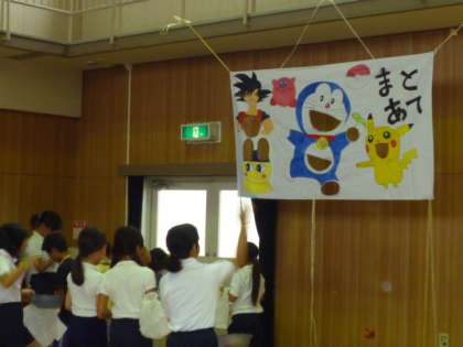 1学期の終業式を終え、夏休みに入った7月18日(土)の午前中、PTAと共催で佃カーニバルを行いました。台風11号のため雨が心配されましたが、全ての行事ができました。低学年と高学年とに分かれて講堂でのミニゲームコーナーやプールで玉入れなどを楽しみました。たくさんの子どもたちが参加して、最後には参加者全員で「○×ゲーム」をして楽しみました。
