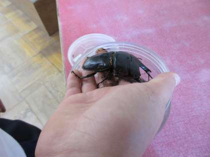 土の中をのぞくと・・・・オオクワガタが!!この冬を越せるといいですね。