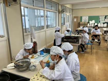 輪切りや短冊切りしたおいもを焼いてみんなで食べました。焼き立てのおいもに塩をちょっと振って食べると、あつあつホクホクで美味しかったですね。