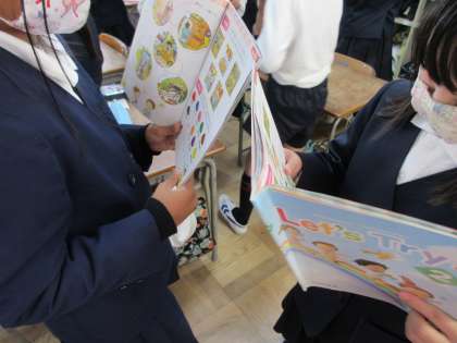今日の英語の学習は、好きな色を一つ選んで、その文字について友だちとたずね合い、相手の選んだ色を当てようゲームをしました。子どもたちは、楽しく活動することができました。