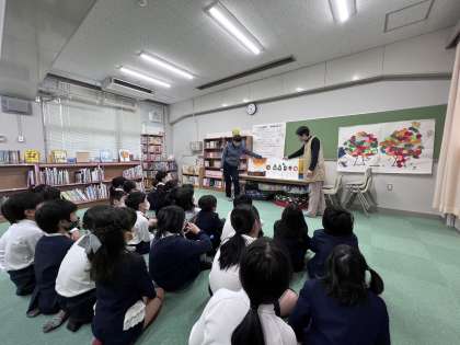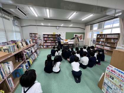 三年生の図書の時間、司書の先生に読み聞かせをしていただきました。