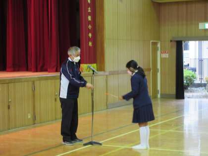 先日、なわとびギネスの表彰式をおこないました。各種目、全校1位の9名に校長先生から立派な賞状をいただきました。おめでとうございます!