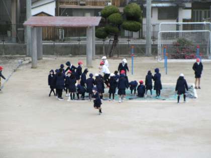 2学期最後の日・・・窓から外を見てみると、雪が降っていて子どもたちは、大騒ぎ!早速、休み時間外へ遊びに行きました。そして教室に、氷のお土産を持って帰ってきました。