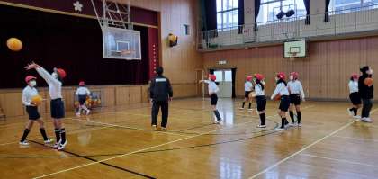 プロバスケットボールチームの「エベッサ大阪」のコーチをゲストティーチャーにお招きし、バスケットボールの練習の仕方やできなかったことがあったときの心構えなどを教えていただきました。