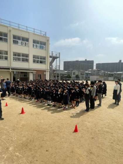 午前中に全学年で150周年の写真撮影を行いました。とても暑い日でしたが、みんな笑顔で撮影できました。