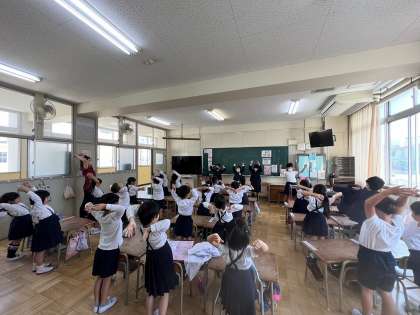 1年生は、保健委員会のお兄さんやお姉さん達のお手本を見ながら、楽しくたいそうすることができました。