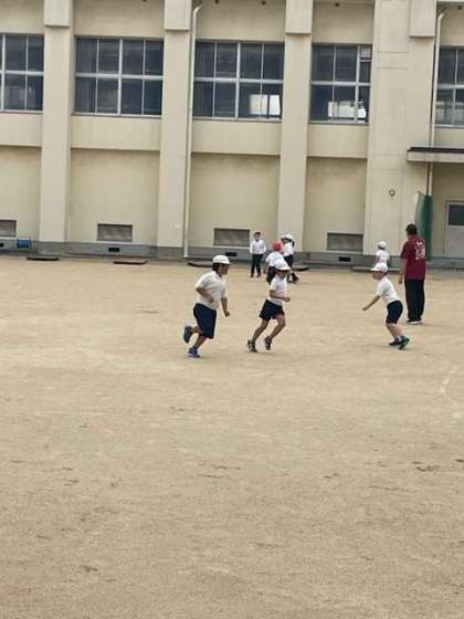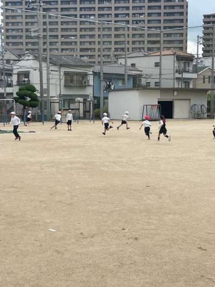 ラジオ体操で準備運動をした後、おにごっこをしました。