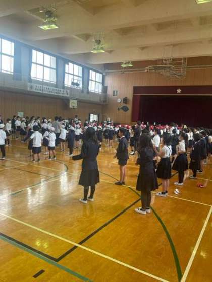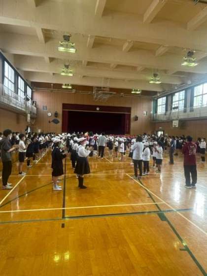 高学年の児童の動きを真似して、低学年の子もがんばって踊りました。