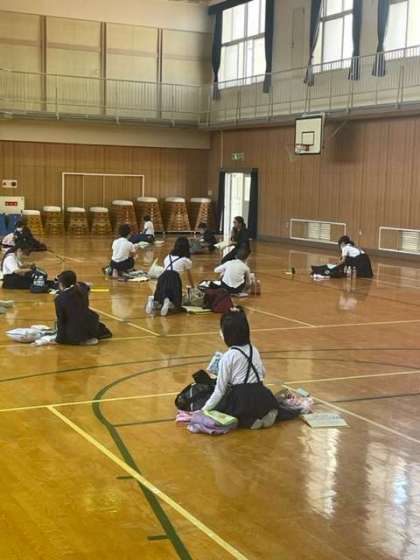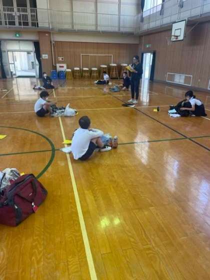 体育館で広がって荷物の最終確認をしました。