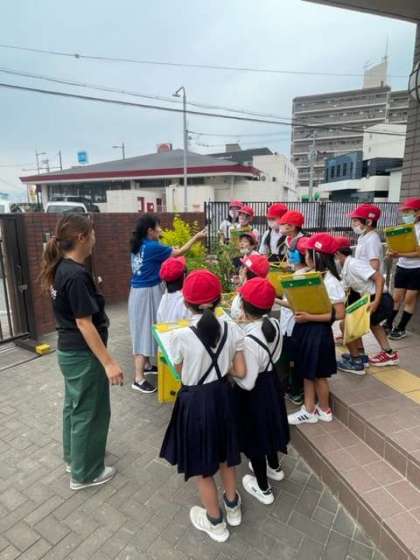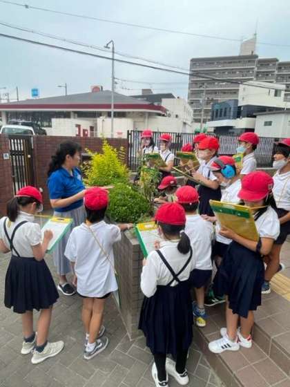 教室から出て、学校内の草花などを見て、梅雨の時期のイメージを持ちました。教室に戻って、絵を描いていきます。