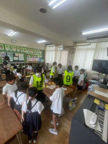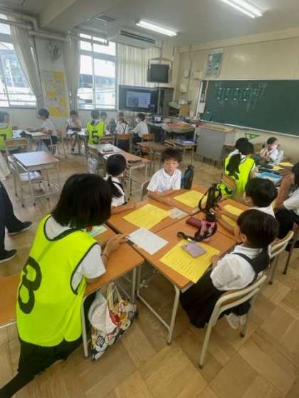 教室では、なかよし班のリーダーを中心にゲームやクイズを楽しみました。