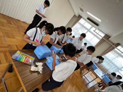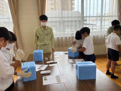 佃地域にある会社「フードテクノエンジニアリング株式会社」の方々に来ていただき、ミニクーラー作りをしました。