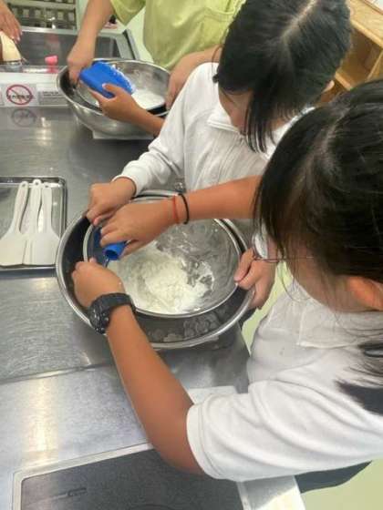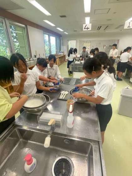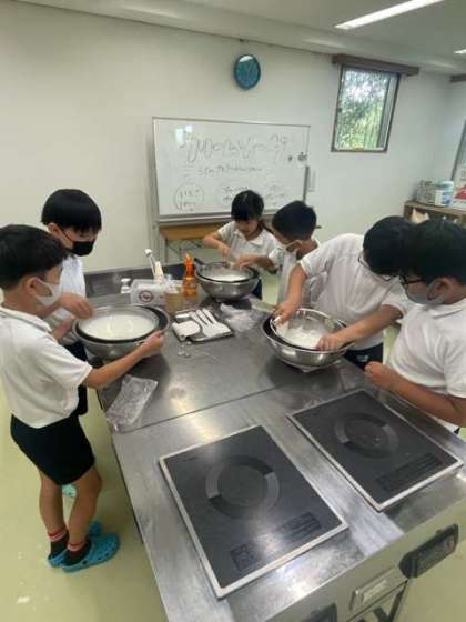 氷に塩を入れてもらい、さらにかき混ぜます。少しずつアイスクリームができてきました。