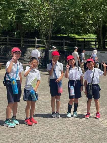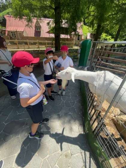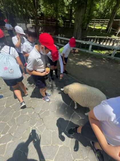 活動班で牧場見学をしています。ヤギの餌やり体験もしました。