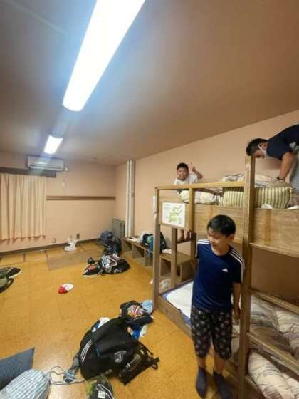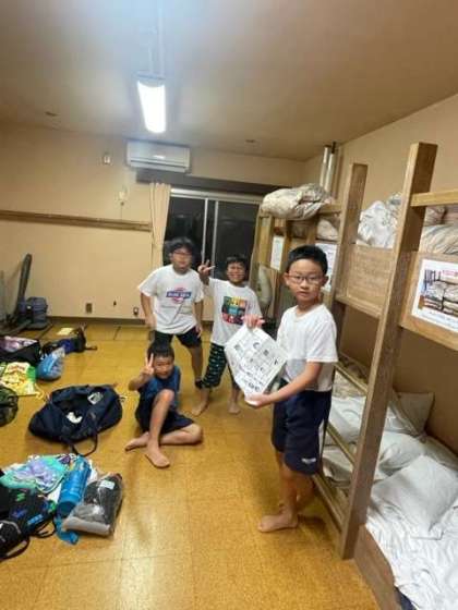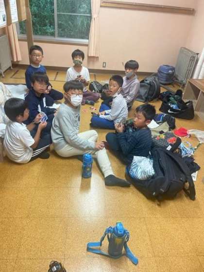 お風呂に入り終わり、部屋の中でくつろいでいます。