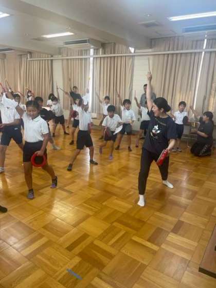 講師先生をお招きして、沖縄の文化とエイサーについて教えていただきました。沖縄のあいさつも覚えてました。