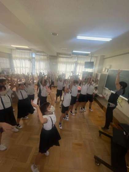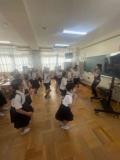 教室で映像を見ながらダンスの練習をしました。