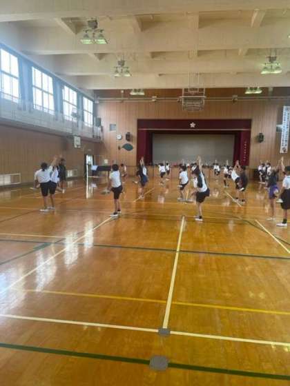 6年生が体育館や運動場で運動会の練習をしました。