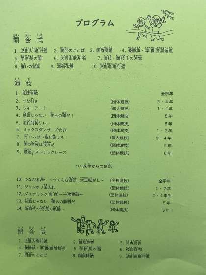 30日(土)の運動会のプログラムです。9時開始、午前中で終了します。