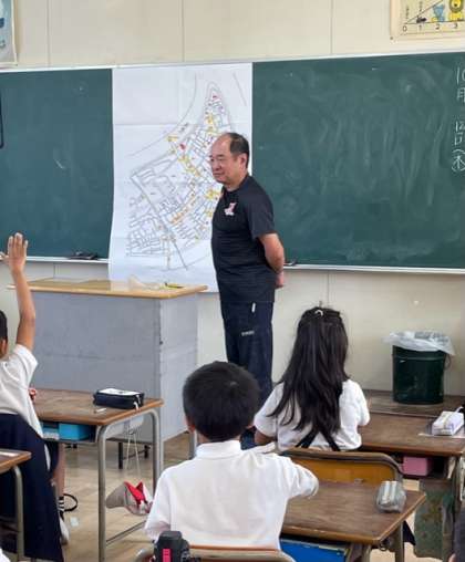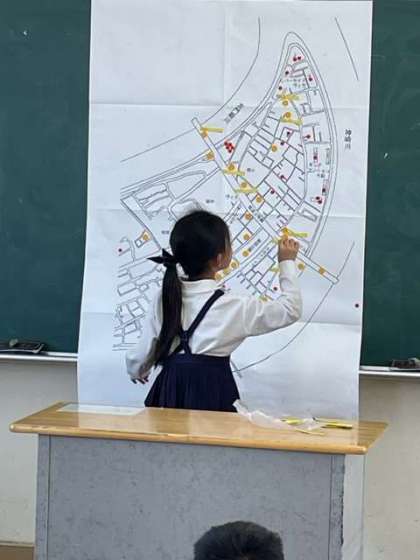 校区たんけんの準備をしています。校区にあるいろいろな施設を確認しました。