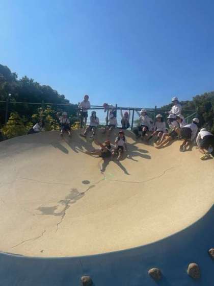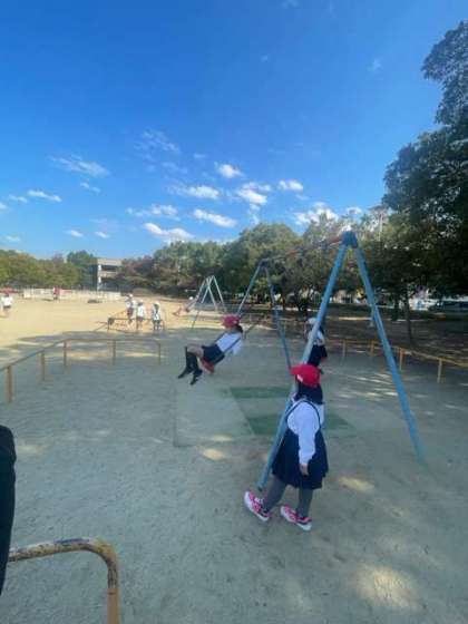 昼食後、どんぐり拾いをしたり、近くの公園の遊具で遊んだりしました