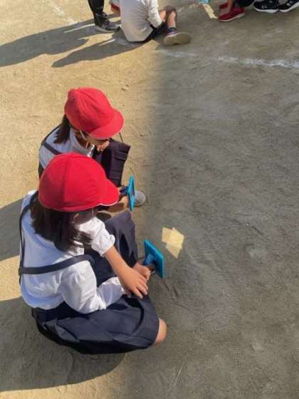 「光のせいしつ」の学習をしました。前回は太陽が隠れていてできなかった実験をしました。鏡を使って日光をはねかえしました。