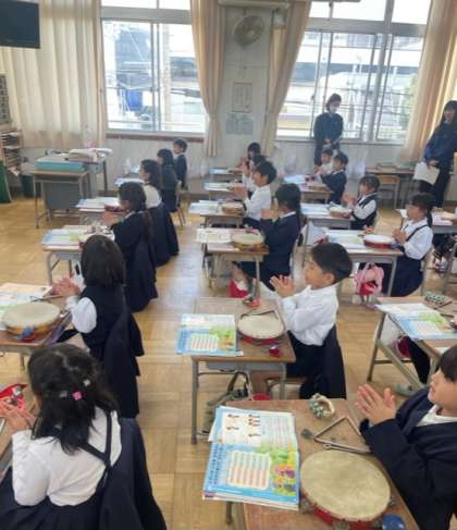 西淀川区の音楽科研究授業を1年教室で行いました。