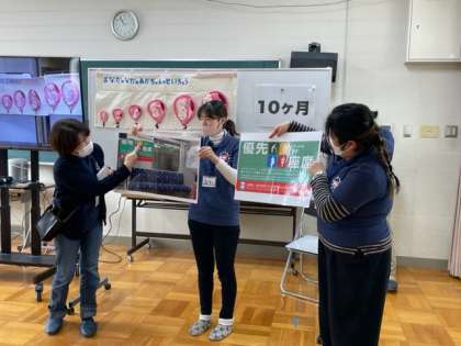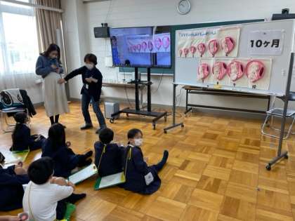 「ニコネット」の皆さんを講師にお招きして、「いのちの授業」を行いました。おなかの中の赤ちゃんの成長の様子を教えてもらいました。