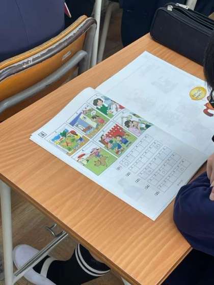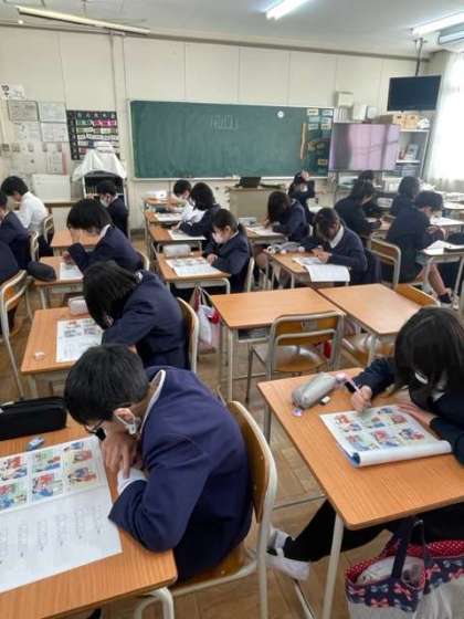 5時間目に英検Jrを受験しました。CDを使った聞き取りテストです。集中して頑張っていました。