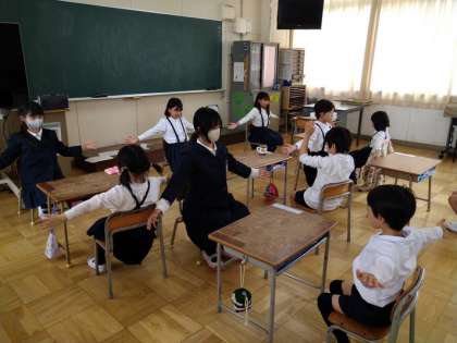保健委員会の活動 〜1年生に「しせいたいそう」を教えよう!〜 その2