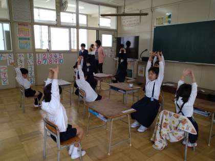 1年生は、保健委員会のお姉さん達のお手本を見ながら、楽しくたいそうすることができました。