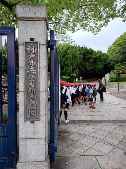 曇り空ですが、全員元気に、須磨離宮公園へ到着しました。