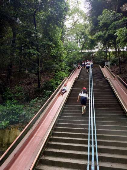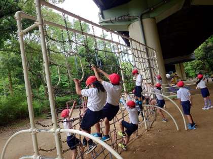 隣接する公園のブランコや滑り台で、思い切り体を動かしています。