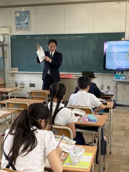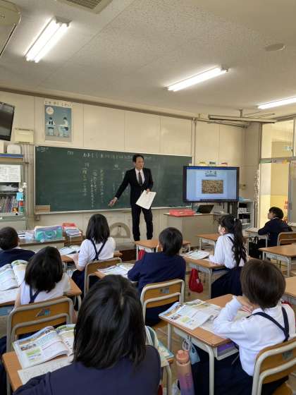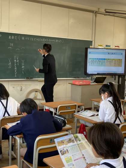 本日は、特別講師として、校長先生が5年生に向けて米づくりについての特別授業をしました。
