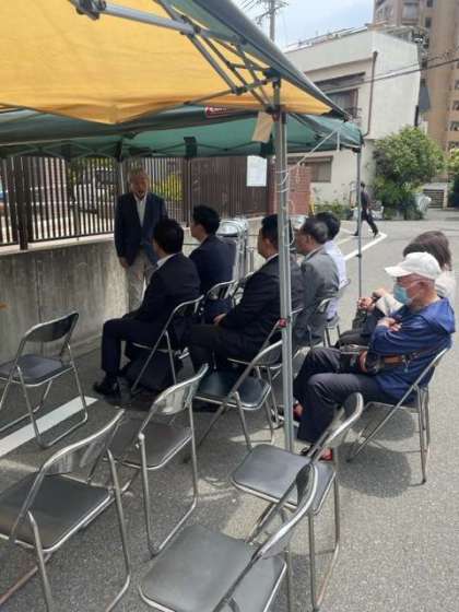 22日(土)に佃小学校の正門横で慰霊祭が行われました。