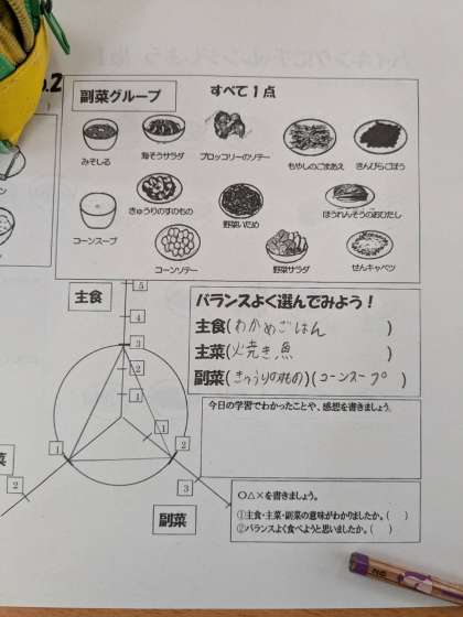 主菜、主食、副菜について学び、食に対する意識が変わったようです。