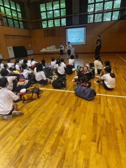入所式を行い、宿舎の方のお話を聞きました。
