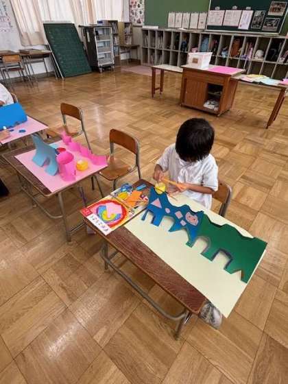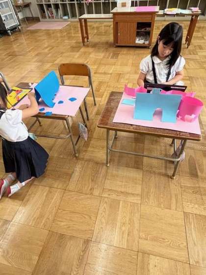 紙を立てたり、切ったりしていろいろな形を見つけました。