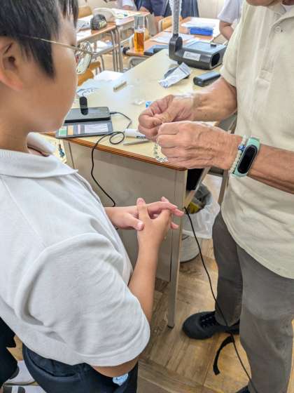 講師の先生をお招きして、とんぼ玉でブレスレットを作りました。