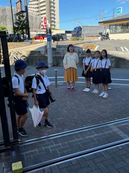 代表委員会の児童が正門の前に立って、元気にあいさつしていました。