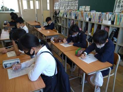 せなかピシッと週間の期間中、各学級では保健委員会が作製した「正しいしせいについて」の動画を視聴しました。写真は、4年生と6年生の様子です。